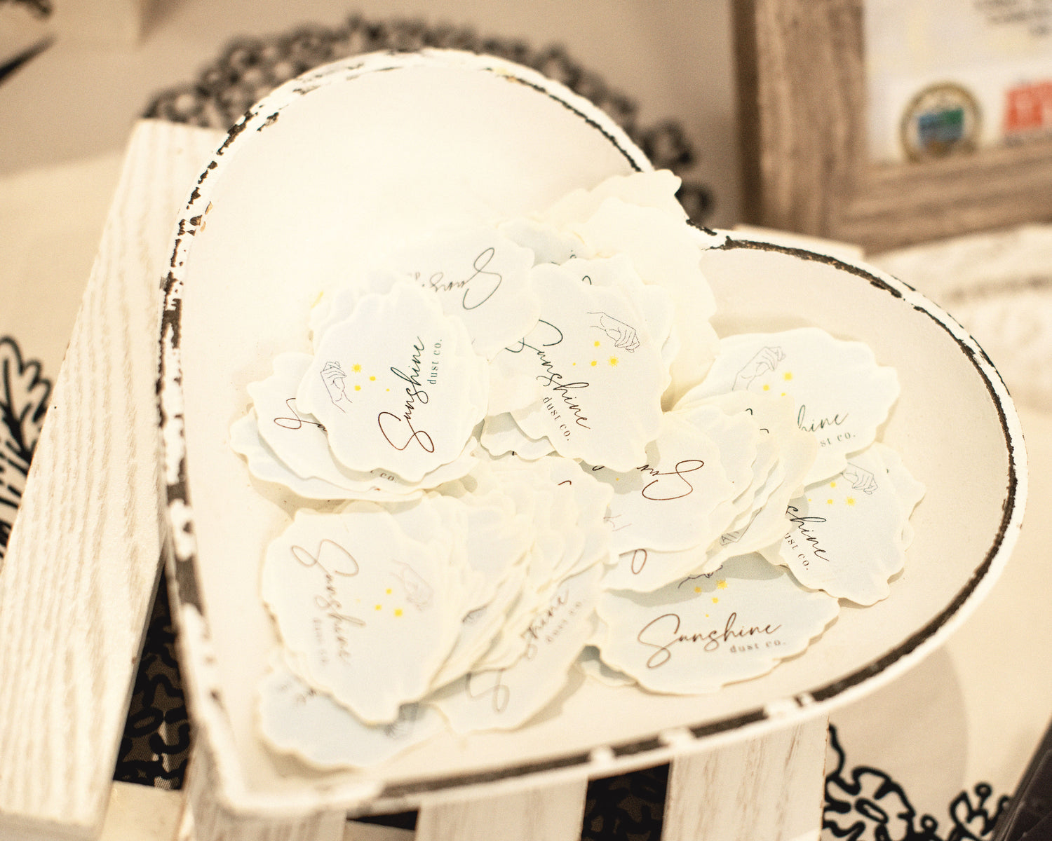 When not creating for Sunshine Dust Co., Lauren loves to read, garden, thrift/antique, and spend time with loved ones.